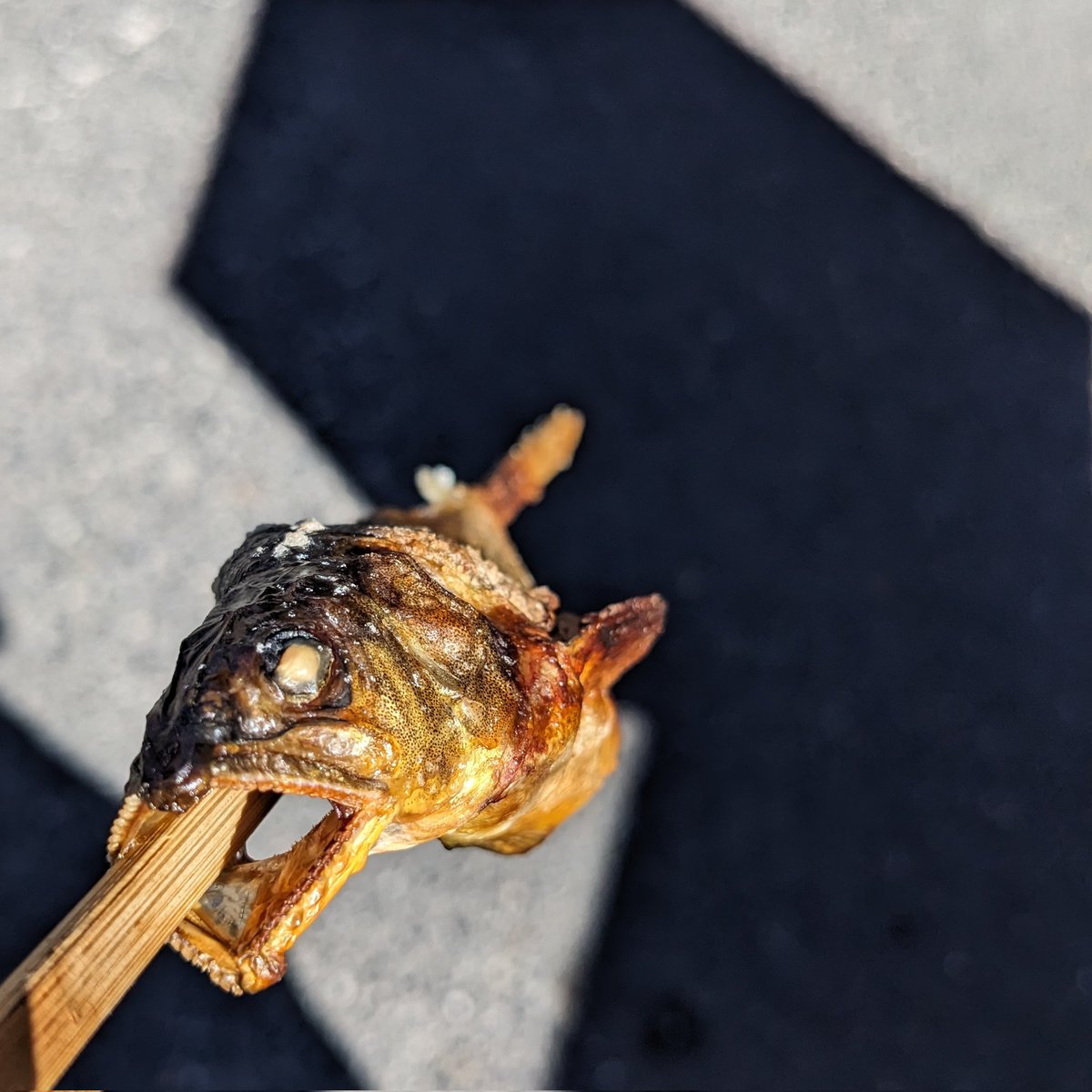アユの塩焼き@hata6502: パッと見でギョッとするね。https://gyamap.com/hata6502?loc=N35.02718055555555E135.79668055555555Z17銀閣寺